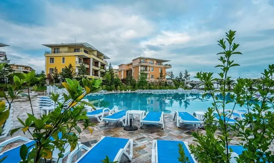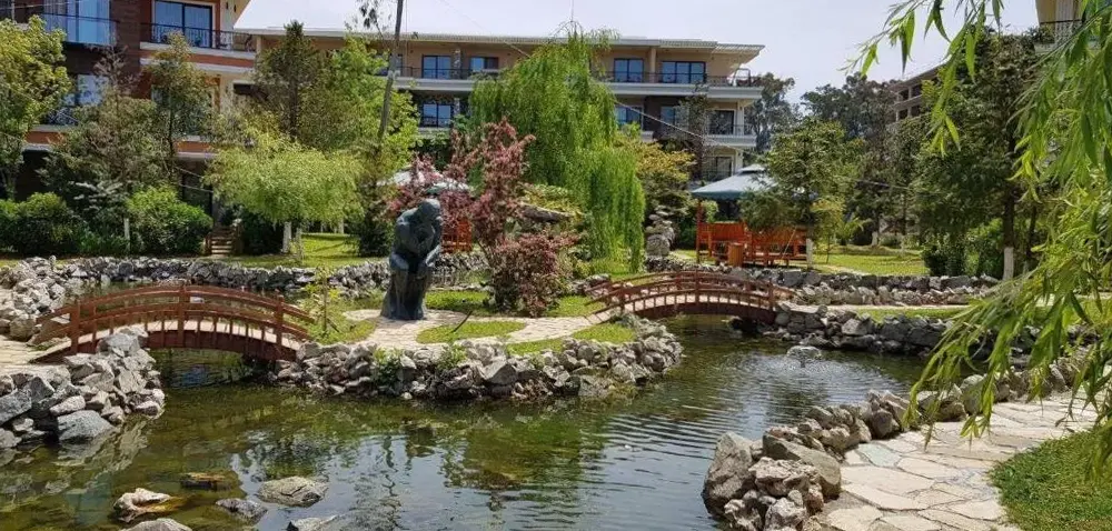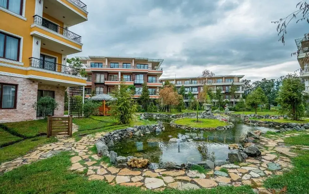 Комплекс замечательный, огромная территория, очень много мини локаций с беседками, мостиками, прудами ( в пруду плавает очень много рыбы). Ландшафтный дизайн на высоте. Большое количество Арт объектов, футбольное поле, супермаркет, кафе и рестораны. Территория очень чистая. Комплекс 10 из 10. В номере есть все необходимое для отдыха: посуда, белье, полотенца, вешалки для одежды.